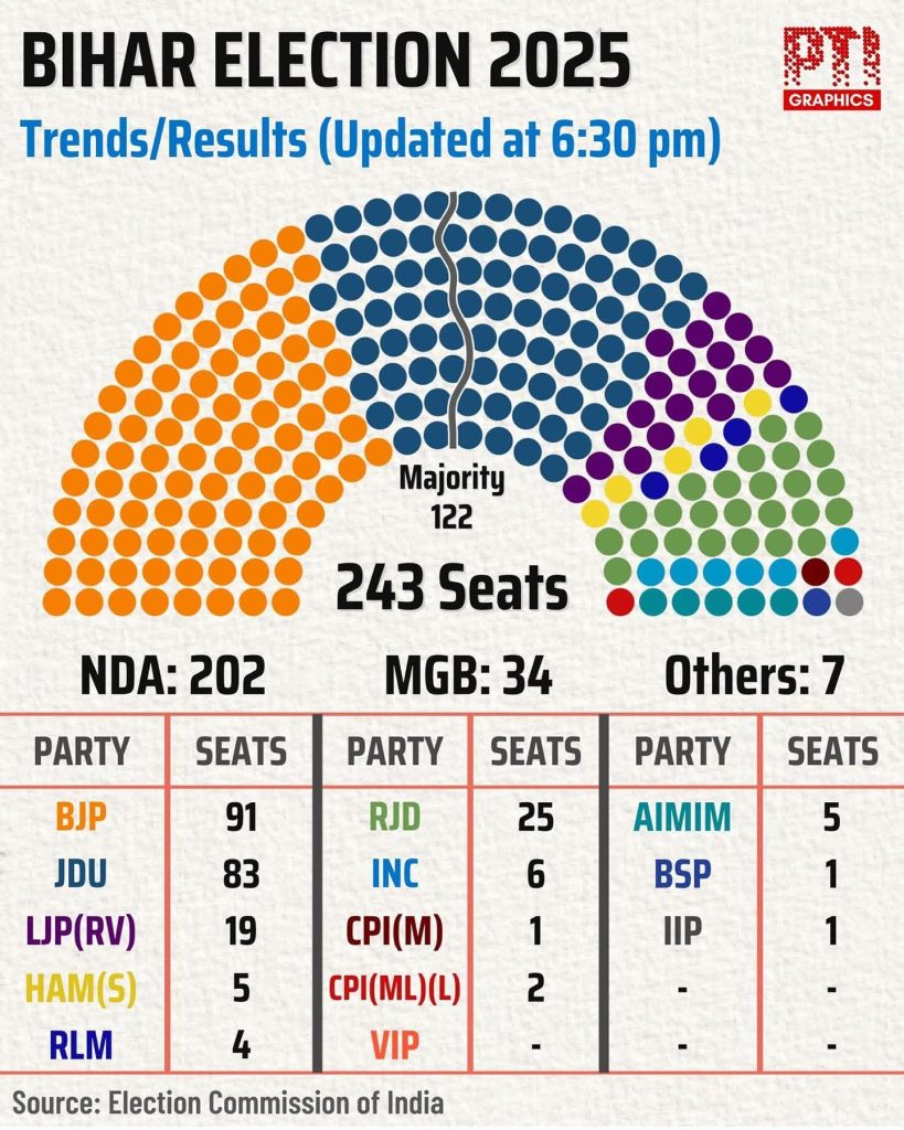 India : Bihar 2025 Election Results – NDA Secures Decisive Victory with Historic Voter Turnout